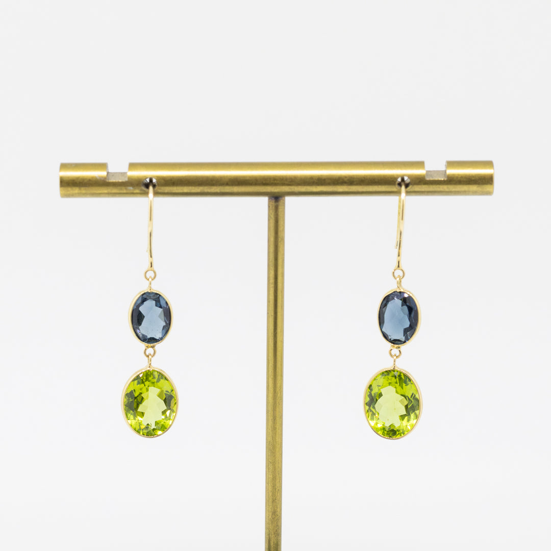 18ct Gold London Blue Topaz & Peridot Earrings