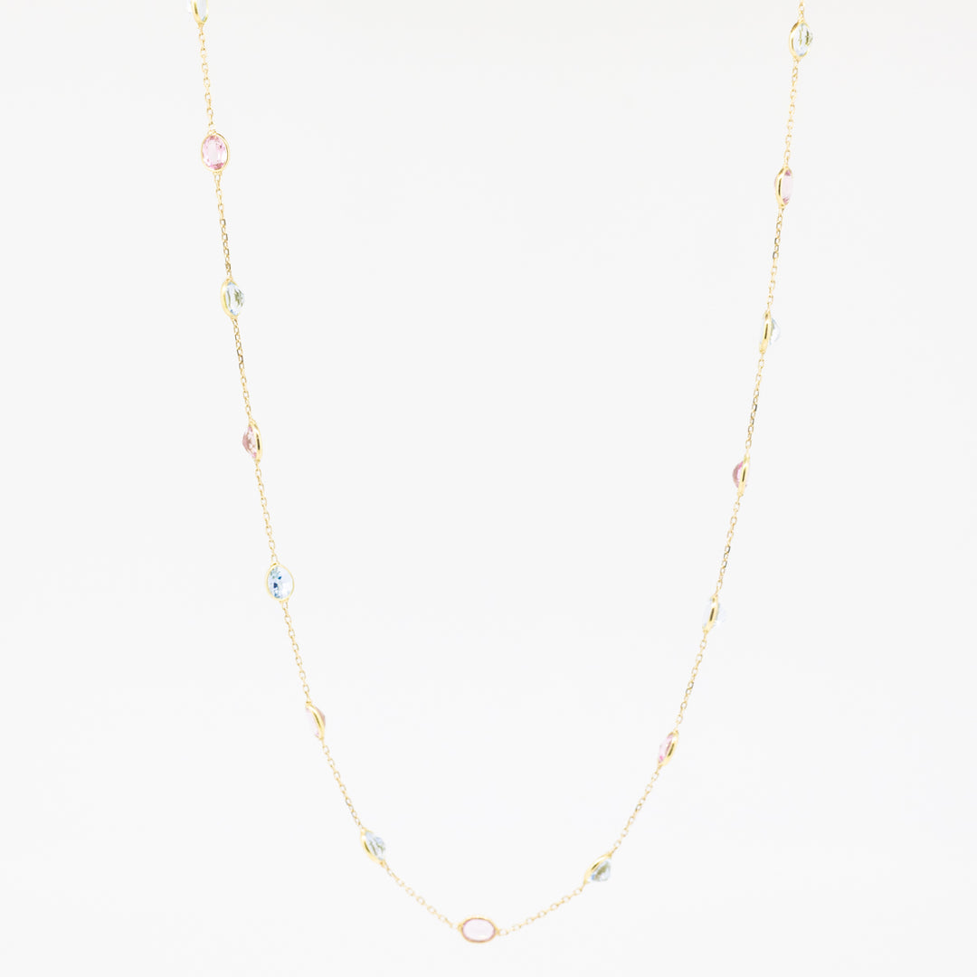 18ct Gold Aquamarine & Kunzite Necklace