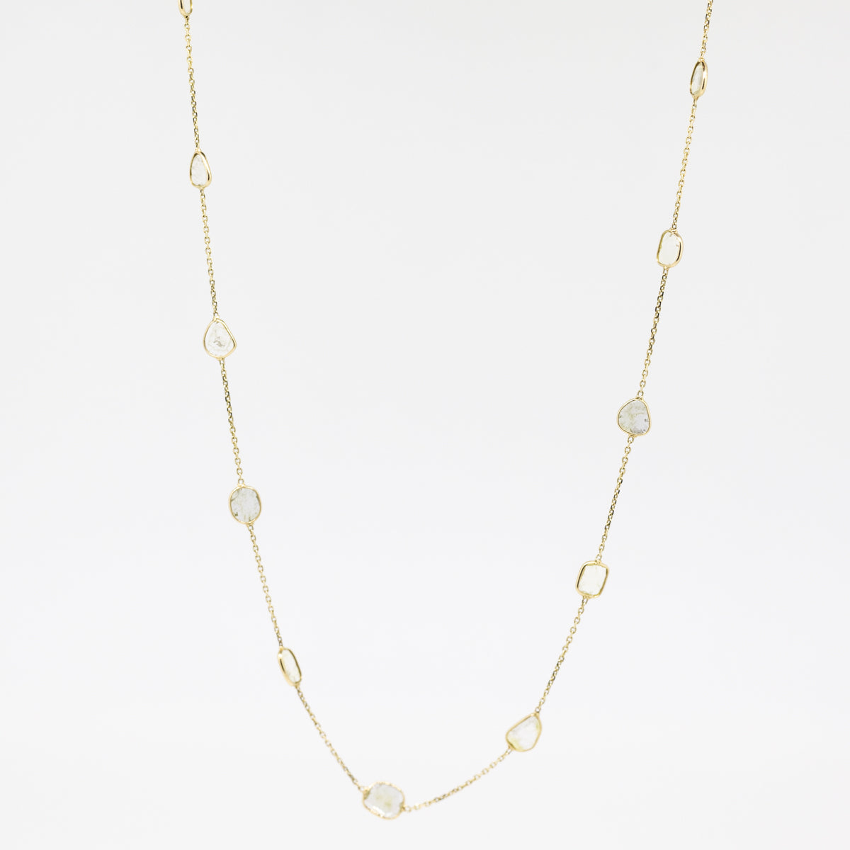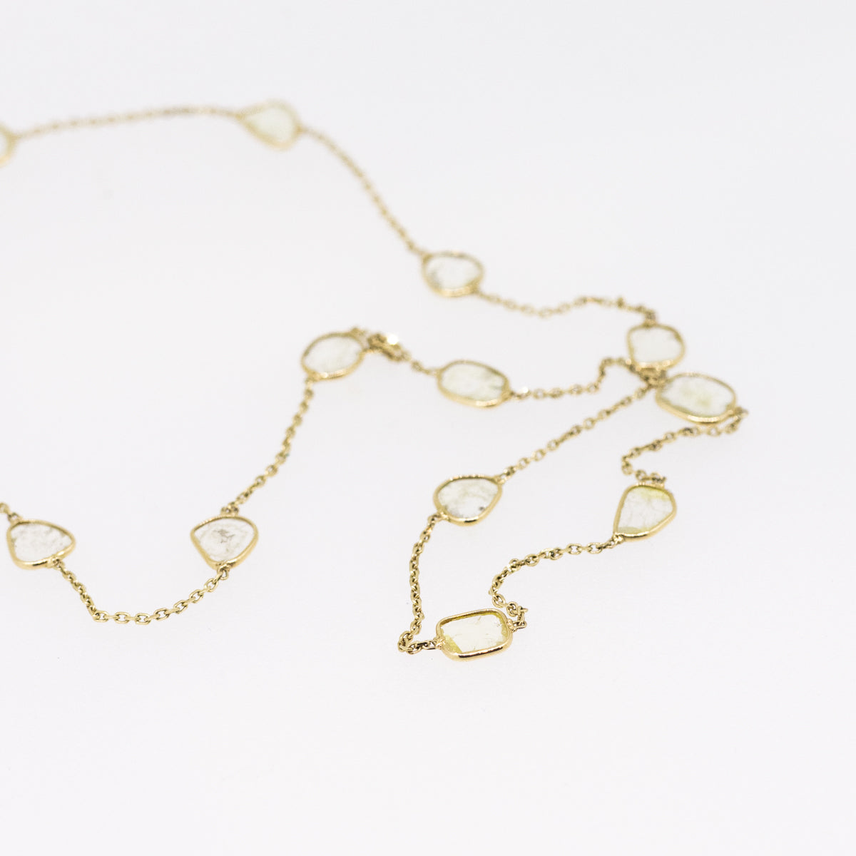 Modern and elegant, this Sliced Diamond Necklace is crafted in solid 18ct gold and set with 1.2ct of brilliant natural diamonds. The sleek flat design highlights the diamonds’ sparkle, creating a refined piece that blends contemporary style with timeless sophistication.