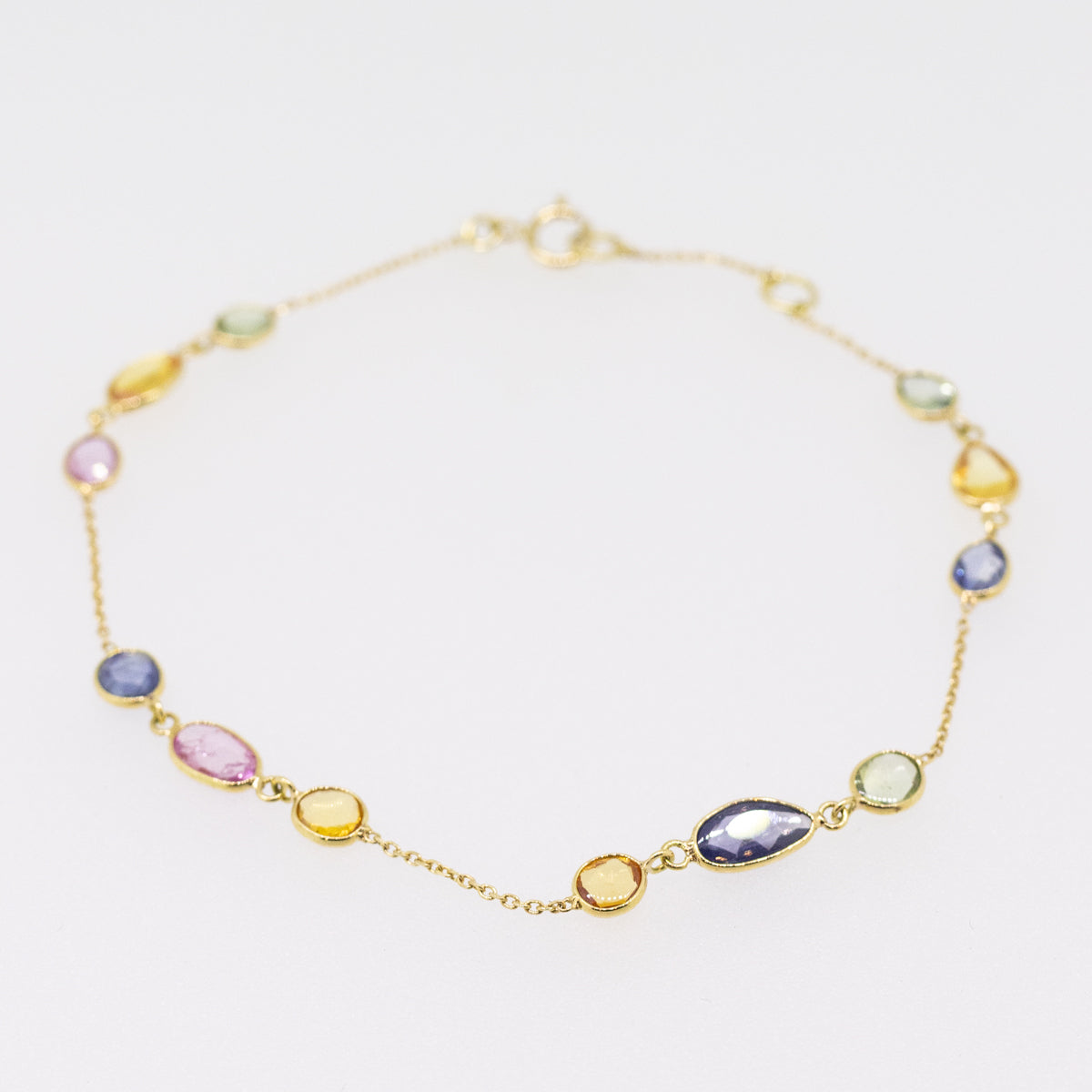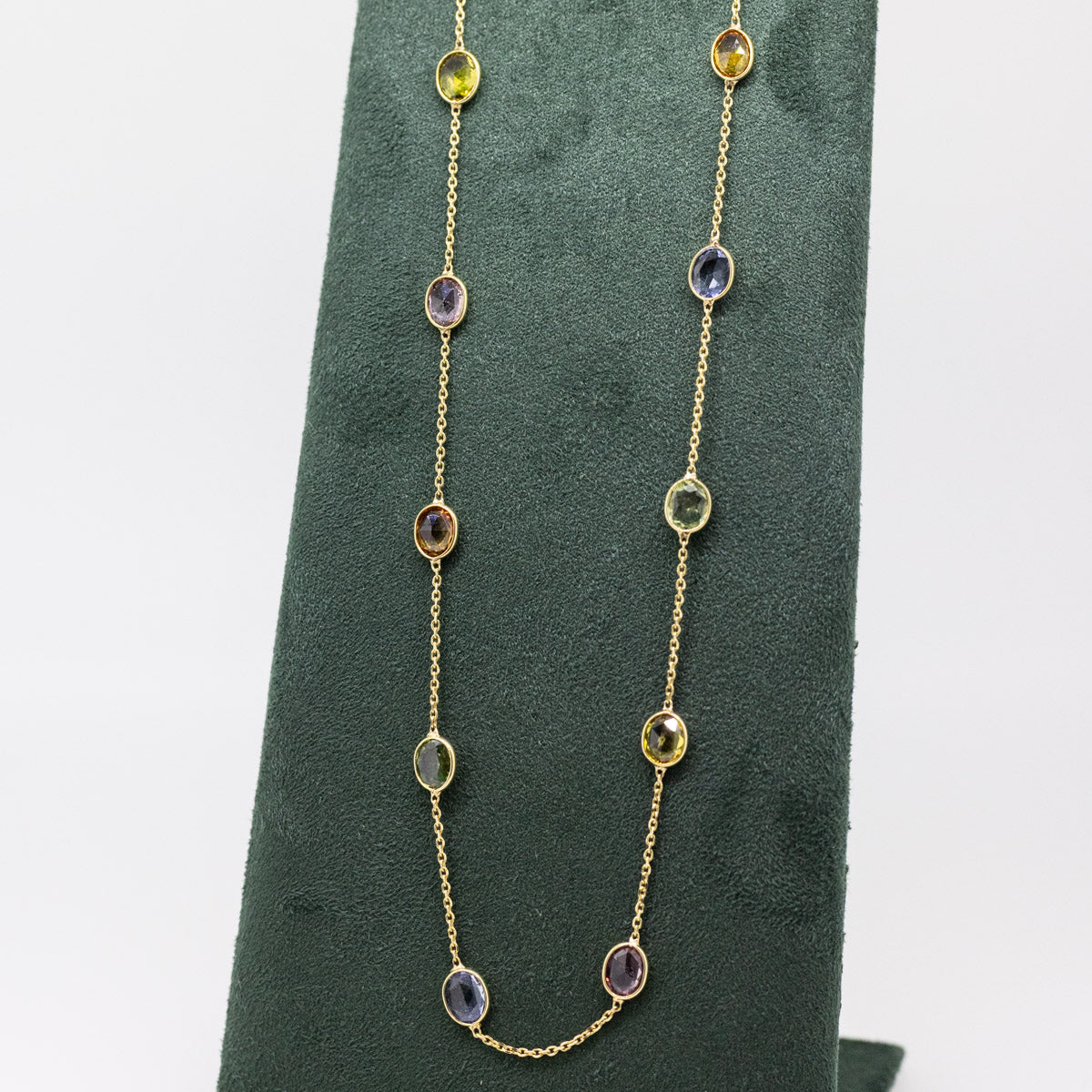 Colourful and refined, this Multi-Coloured Rainbow Sapphire Necklace is crafted in solid 18ct gold and set with 5ct of natural sapphires in a spectrum of radiant hues. The vibrant gemstones create a striking yet elegant design that brings a touch of sophistication and individuality to any jewellery collection.
