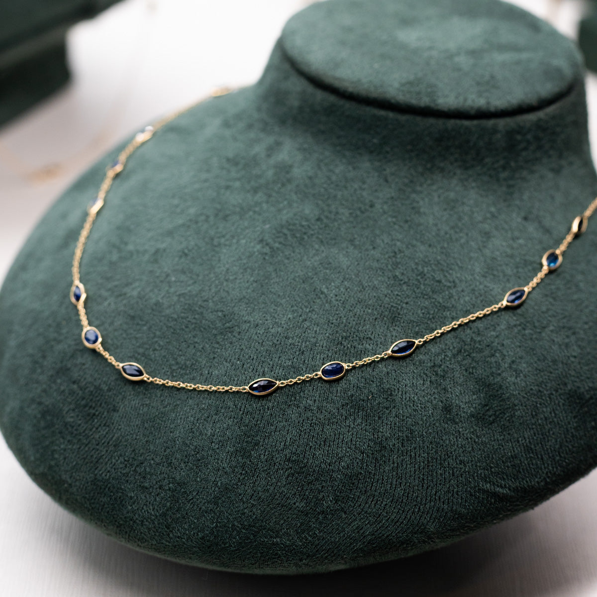 Elegant and timeless, this Sapphire Necklace is crafted in solid 18ct gold and set with 2.3ct of deep, lustrous sapphires. The rich blue gemstones bring a touch of sophistication and refinement, making this necklace a perfect statement for both everyday wear and special occasions.